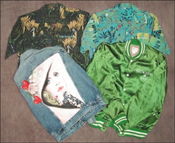 Wear this Rumours satin baseball-style tour jacket, two different large Hawaiian style "Tango in The Night" promo shirts (L), and, if it gets a little chilly, you can put on this Stevie Nicks denim handpainted jacket. Also size Large.