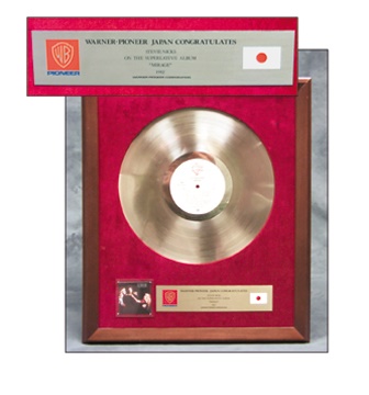 Presented to none other than Stevie Nicks for the superlative album Mirage. Presented by Pioneer in Japan. VG+ with small ink spot in red velvet.