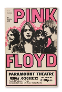 Mind-blowing 1971 boxing style poster announcing Pink Floyd appearing on October 22nd at the Paramount Theatre in Portland, Oregon. Minor stains and creases, VG-EX.