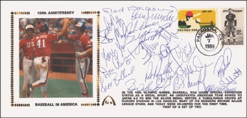 The all-important early Mark McGwire signature is in perfect blue ink here along with twenty teammates from the stars of the Los Angeles diamond. And that's the future home run king in the photo at left as well.
