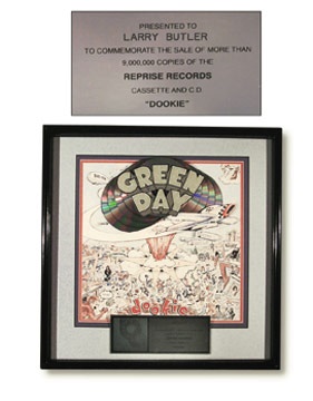 This Reprise Records CD and cassette award is for their mega hit "Dookie" for sales of 9 million. It is framed with unusual three dimensional artwork.