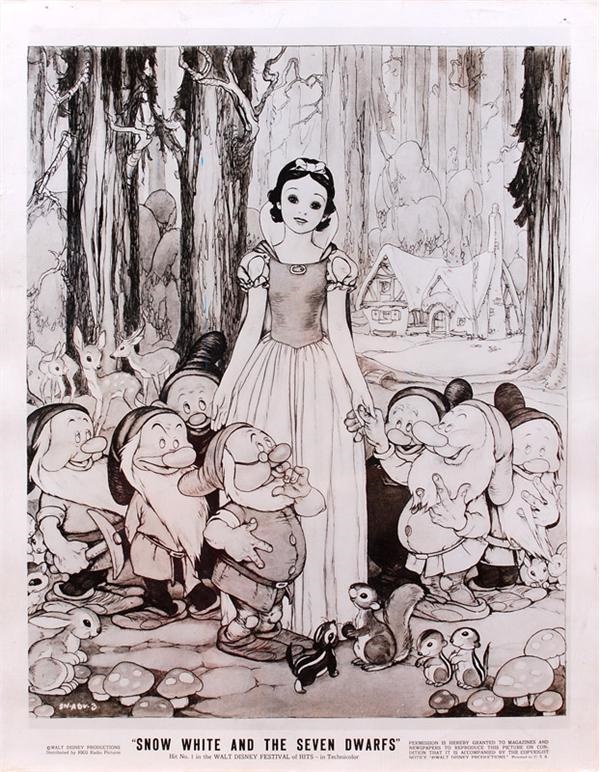 SNOW WHITE & THE 7 DWARFS Walt Disney, 1937 Studio production photographic poster publicized the film’s original release. 11x14; EX