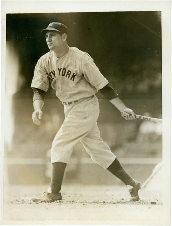 This is a great collection with a variety of news service photographs capturing a host of Yankee players from 1932-1939. There are several player portraits (40%), staged field shots (20%), and of course on field action shots (40%). The photographs vary in size and measure 5 x 7" (25%), 6 x 8" (25%) and 7 x 9 (40%) and the remaining (10%) are odd sized, some slightly larger, some smaller. Some of the key players featured are Johnny Murphy, Joe Glenn, Monte Pearson, and Manager Joe McCarthy. The quality of the collection is overall VG+ with some minor wrinkling, edge wear, age discoloration and editorial markings, some of the individual photographs grade a bit better, with sharp clear color and exceptional paper quality. This is a nice compilation of photographs of some of those players that had a huge impact on the team but in history have been a bit overshadowed by some of the era's truly phenomenal Yankee players.