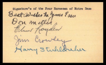 Lot # 1191: 1920's Four Horsemen of the Apocalypse Signed Index Card