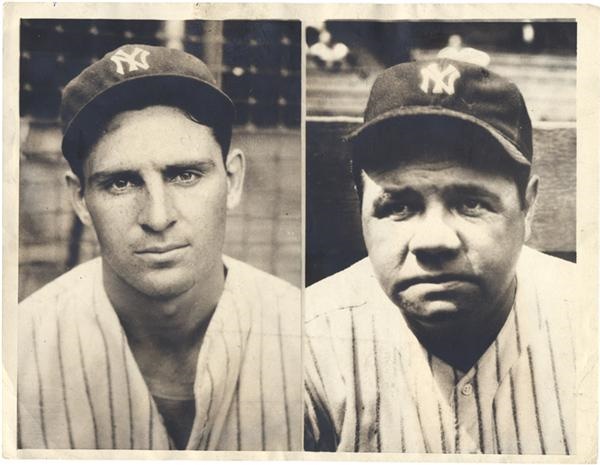 BABE RUTH (1895-1948)Star Outfielders, 1932International newsphoto is rare tapestry finish used by them only from 1932-1933. Side by side facials of Ben Chapman and Babe Ruth. 6.5x8.5”; EX-MT