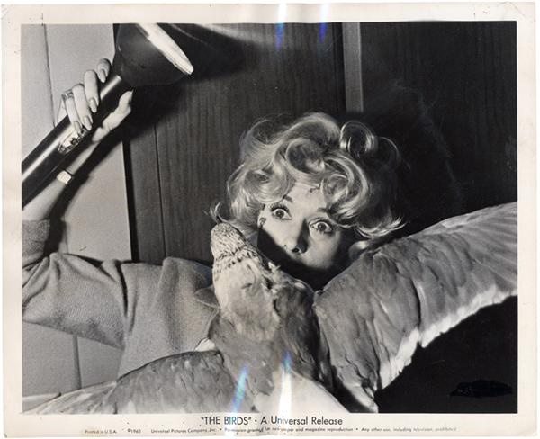 THE BIRDSTippi Hedren with flashlight, 1963 Movie still with original newspaper article on verso. 8x10”; EX