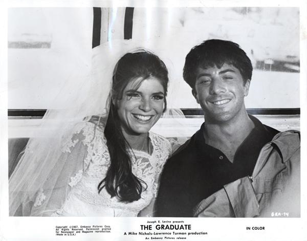 THE GRADUATEMr. & Ms. Robinson, 1967 Original movie still with original newspaper article on verso. 8x10”; EX-MT