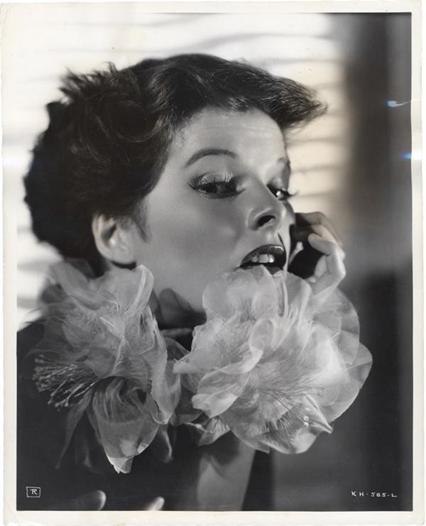 KATHERINE HEPBURN (1907-2003)Glamour Still, 1937 Original promotional still reeks of Hollywood glamour. Original paper caption on verso. 8x10”; EX-MT