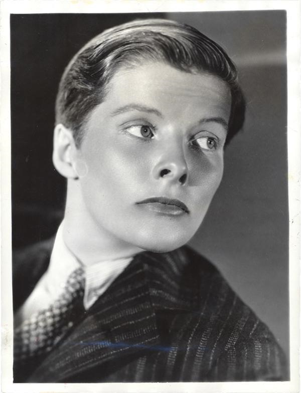 KATHERINE HEPBURN (1907-2003)Sylvia Scarlet, 1935 International newsphoto of the androgynous Hepburn. Original paper caption on verso. 6.5x8.5”; NRMT