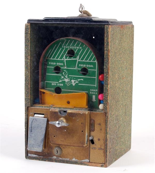 Charming 8 x 8 x 14'' game uses just a spring and a ball to create gridiron fun for kids. Successful play earned a gumball. VG condition.