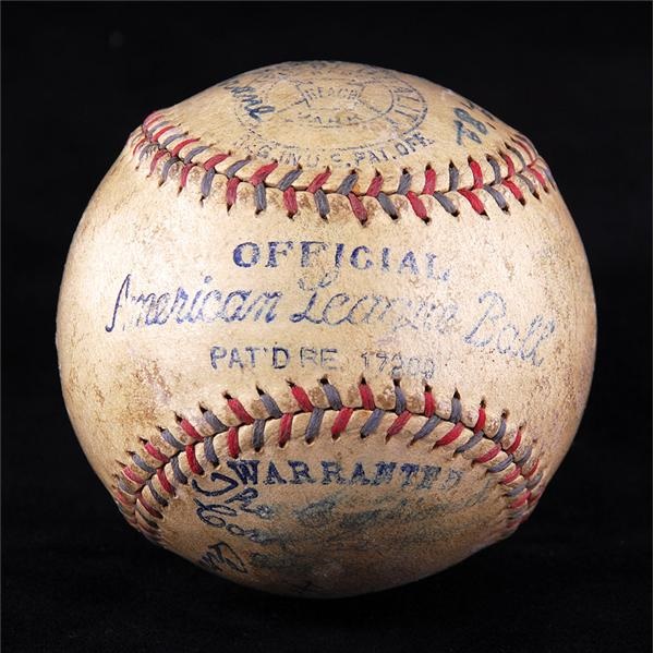 The official American League ball is clearly dated July 22, 1932. It was the last ball used in a game between the Athletics and the Senators which the Athletics won 8-4. The ball is George ”Rube” Walberg’s 118th career win. Rube Walberg kept the ball and immediately wrote the date of the game, the score and the “batteries” involved in the game. The ball is accompanied by an affidavit and LOA from Rube Walberg’s daughter.
