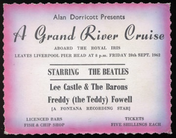 This was the group's third appearance of the summer aboard the "Royal Iris", one of the later to be famous ferries "across the mersey". Scalloped edged. Ex. 4 1/2" x 3 1/2".