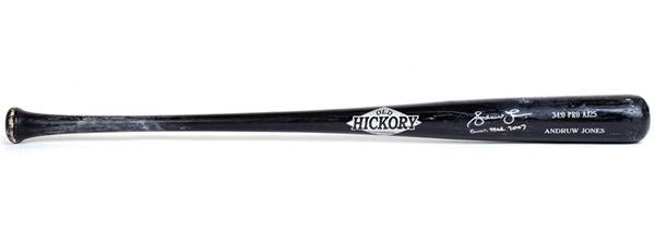 34’’ Old Hickory 34.0 Pro AJ25 model bat has been signed in silver ink. Jones has added “Game Used 2007” beneath his signature. “25” is stamped on the bottom of the knob. Shows good use with ball marks.