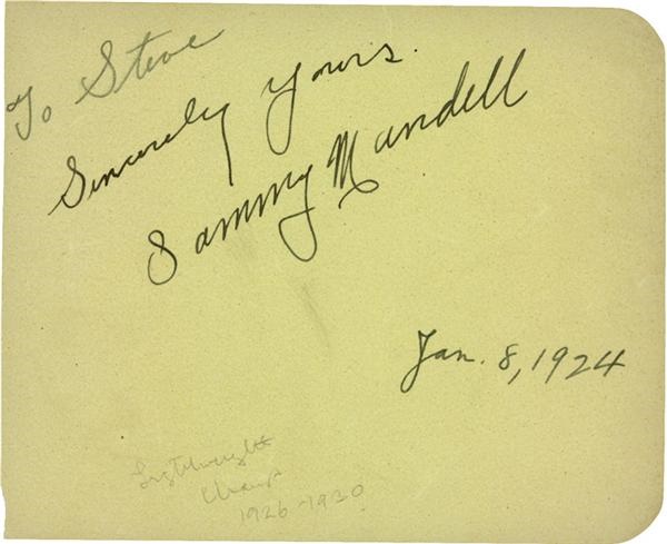 4 x 6'' album page signed in bold black ink and dated Jan 8, 1924. He died in 1957.