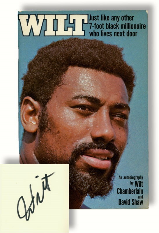 A first edition copy of Wilt, Just Like Any Other 7 Foot Black Millionaire Who Lives Next Door is in EX-MT condition. The autobiographical book written with David Shaw is a soft cover bound book which dates from 1973. The book includes several photographs of the world famous basketball player and the condition of the cover, interior pages and binding is pristine. The book is signed Wilt on the page opposite the title page and the black sharpie signature is MINT. This book is rare and difficult to come by, especially signed by the legendary "stilt" center, making this a real treasure for basketball fans out there. COA