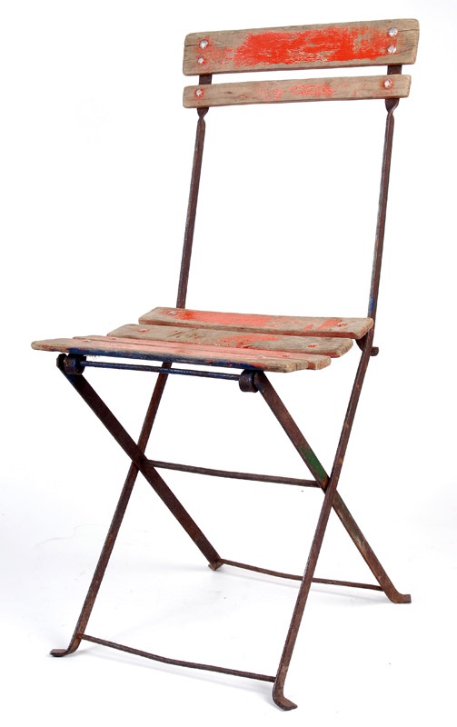 33 1/2'' folding chair was originally used at Crosley Field and removed before it was demolished. All original with the worn paint. This seat is so old, it might have been used at Redland Field.