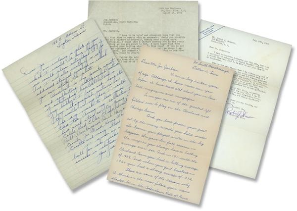 A nice collection typed and handwritten letters addressed to Shoeless Joe and his wife, Katie. The four letters addressed to Joe are asking for autographs, with the letters to his wife are in regard family and friends. Usual fold lines with some tone from aging.