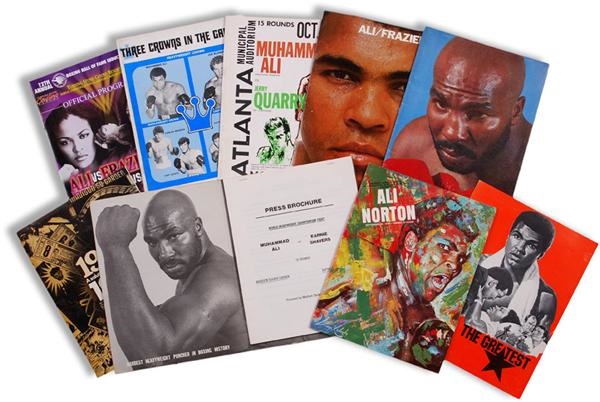 Lot # 326: Nice Collection of Muhammad Ali Fight Programs and Press Kits (9)