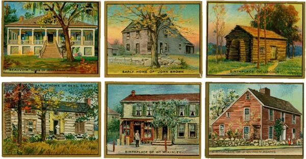 Complete set of (50) Historic Homes Tobacco Cards issued by Helmar Tobacco. Set grades about 50% EX or better, 30% VG and 20% lesser.