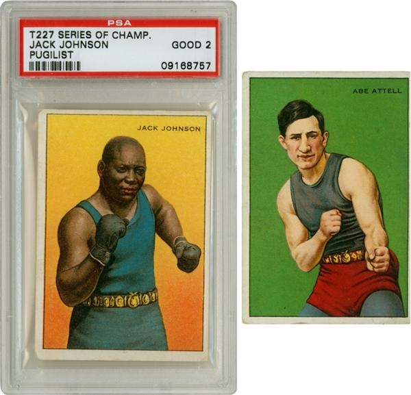 Lot # 338: T227 JacK Johnson and Abe Attell Boxing Cards (2)