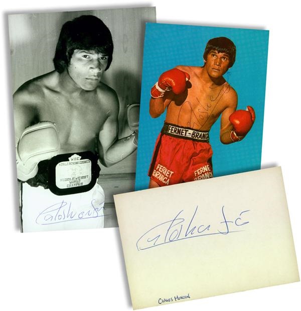 1) 4 x 6'' unused postcard has been signed in Mint blue ink. 2) 5 1/2 x 3 3/4'' cut has been signed in Mint blue ink. 3) 4 3/4 x 7'' black and white photo has been signed in Mint blue ink. Light wear overall EX to Near Mint.