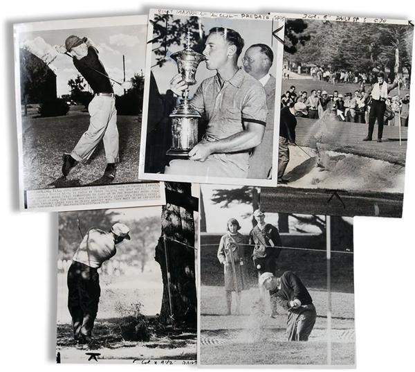Straight from the archives of the famed San Francisco Examiner comes this lot of Billy Maxwell photos (15). They capture the golfing great in tournament play and trophy pose at various opens around the country in the 1950's. Sizes average 8" x 10" and condition ranges from VG-EX with many having newspaper artist enhancements and captions.