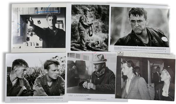 Collection of Hollywood movie studio and wire service photos (26) of actor Sean Penn. They include movie still shots from several movies including “Casualties of War”, “The Falcon and the Snowman”, “Thin Red Line”, “Bad Boys”, “Colors” and more. News service photos include shots with Madonna. Some are laser photos. Sizes average 8” x 10” and conditions range from VG-EX., some with caption sheets on the verso.