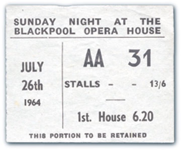 A day after George and Ringo appeared on the BBC's "Juke Box Jury", the group gave two concerts at the Blackpool Opera House. Some creasing.