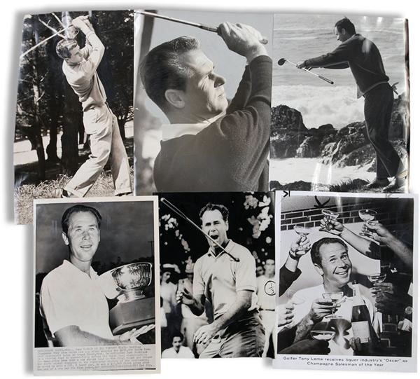 Golfer Tony Lema is the subject of this photo lot (38) from the SF Examiner. They date mostly from the 1960's. Sizes range from 5" x 6" to 8 1/2" x 11". Conditions range from VG to EX. Many have captions sheets on the verso and some have newspaper artist markings.