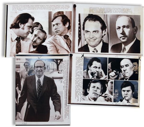 Eleven 5 1/2 x 9 1/2'' to 8 1/2 x 11'' wire photos (a few are laser wire photos) of the Law & Order star and former Presidential hopeful. The photos show Thompson during the Watergate investigator and afterwards. Editor's crop marks with some light toning and a few having very mild creases overall VG to EX-Mint.