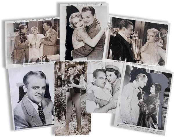 Actor James Cagney photo collection (50+) comes to us from the SF Examiner newspaper archives. The images span his career starting in the 1930's through the 1970's. They are fairly evenly distributed decade to decade. Some of the later prints are laser photos. Some are studio promotional shots or movie stills. Sizes range from a very small 3" x 4" to a more standard 8" x 10 1/2". Conditions are from GD to EX with most being VG. Some have newspaper edit markings.