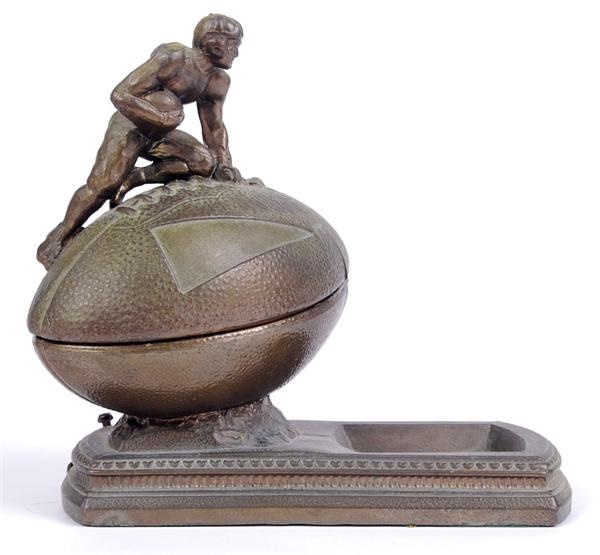 Lot # 452: Great Early Figural Football Cigarette Pack Holder and Ashtray