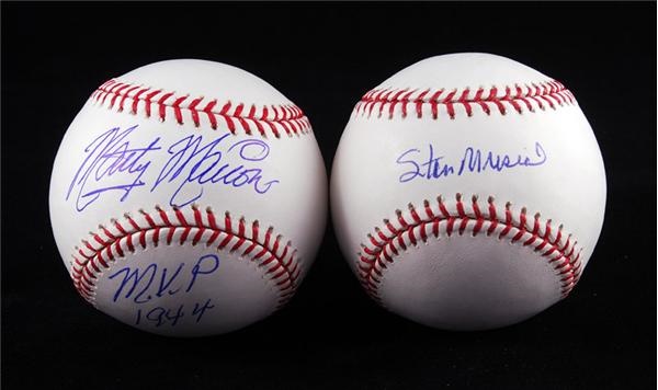Lot # 92: Stan Musial and Marty Marion Single Signed Baseball Lot (2)