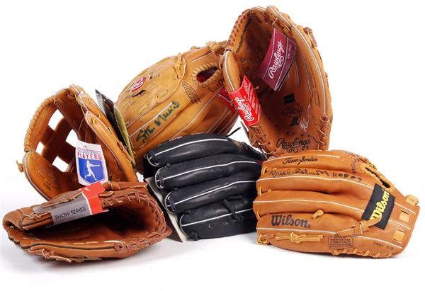 1) Ted Williams signed Rawlings Pro-BFB model glove. 2) Derek Jeter signed Nike Show Series model glove. Accompanied by a COA from JSA and has their sticker affixed to the glove. 3) Cal Ripken Jr signed Rawlings CRJR2131 glove. 4) Stan Musial signed Rawlings RMG134T model glove. 5) Brooks Robinson signed Wilson A9565 model glove. 6) Nolan Ryan signed Rawlings RBG34 model glove. All the gloves show no use. Signatures rate 8 to 10 out of 10.