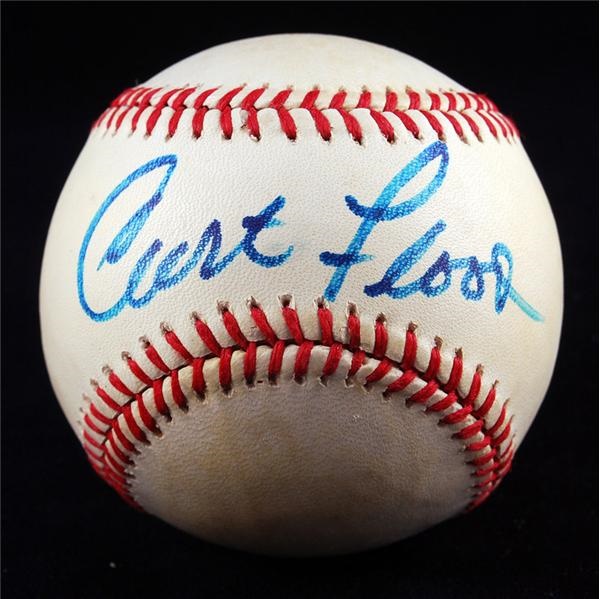 Official American League (MacPhail) ball has been signed by Flood in Mint blue ink. Ball has some mild staining.