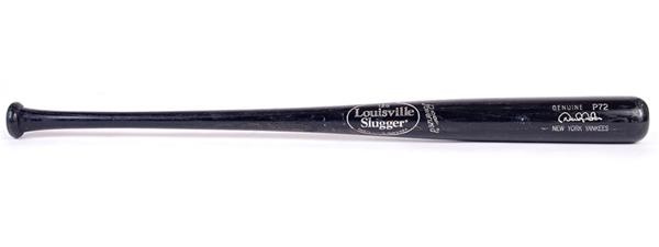34'' Louisville Slugger 125 Genuine P72 model bat.Uncracked. Shows good use with rack marks, pine tar on the handle, ball marks and some grain seperation on the barrel.