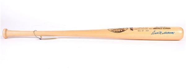 35'' Louisville Slugger 125 Ted Williams model bat has been stamped on the barrel "Commemorating The Last .400 Hitter - .406 in 1941 - Limited Edition 1985 - 382 of 406". Signature rates Mint. A small ding on the back of the barrel otherwise Mint. Accompanied by an LOA from PSA/DNA and has their sticker affixed to the bat.