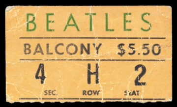 Among the scarcest of all North American tickets is a stub from Cleveland's Public Auditorium. The Beatle's faces are pictured on the top portion of these tickets which, unfortunately, was retained by the ushers. Creased.