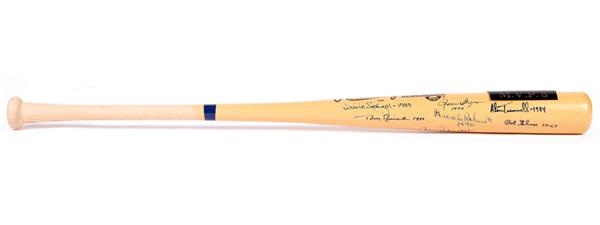 35'' Rawlings Adirondack model bat has been signed by 15 World Series MVPs. Includes: Pete Rose, Willie Stargell, Rollie Fingers, Bobby Richardson, Brooks Robinson, Alan Trammell, Bob Gibson, Johnny Podres, Whitey Ford, Mickey Lolich, Bucky Dent, Johnny Bench, Frank Robinson, Reggie Jackson, and Don Larsen. Signatures rate 7/8 to 10 out of 10. Bat rates Mint. Accompanied by an LOA from PSA/DNA and has their sticker affixed to the bottom of the knob.