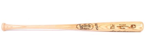 34'' Louisville Slugger 125 All-Time Home Run King 755 HRs model bat. Aaron has signed the bat in Mint blue ink while Sadaharu Oh in Mint gold ink in English and Japanese. Bat rates Mint. Accompanied by an LOA from PSA/DNA and has their sticker affixed to the bottom of the knob.