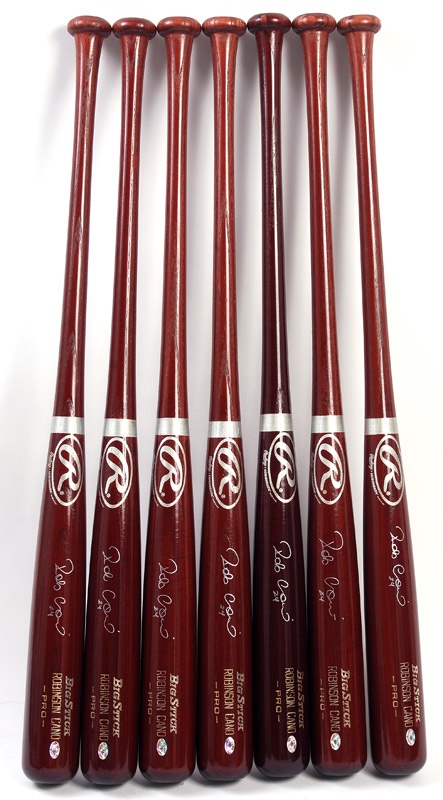 Seven identical 34 1/2'' Rawlings Adirondack Big Stick model bats have been signed in Mint silver ink. Bats rate Mint. Each bat is accompanied by a COA from PSA/DNA and has their sticker along with a Cano Authenticated affixed to the bat.