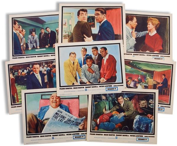 Eight 14 x 11'' lobby cards for the 1960 Rat Pack movie. A small chip off the bottom right corner of one of the lobby cards with a few having minor creases. The rest have light staining and small tack holes overall G to EX.