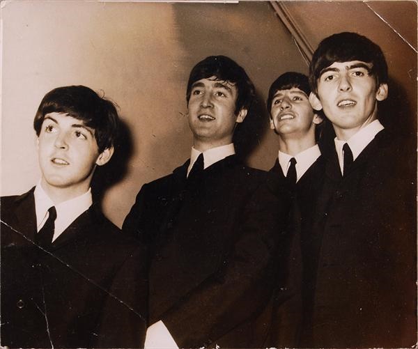 10 x 12'' photo shows a young "Fab 4". Some creasing but the clarity is still very nice.