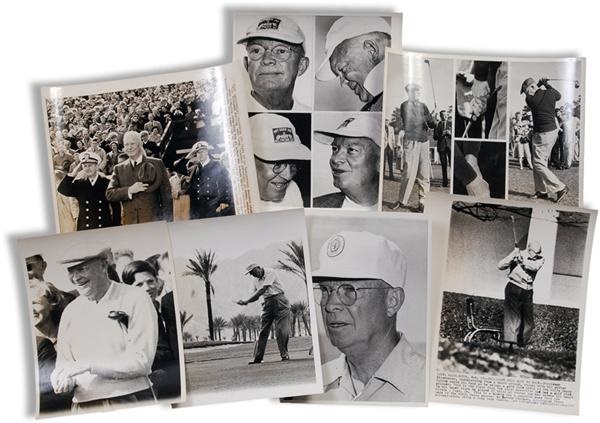 One lot of (14) photographs of Dwight D Eisenhower playing Golf (12), attending the 1960 opening day game in Washington (1) and attending Army-Navy Football game (1). About 8 x 10’’. EX-MT.