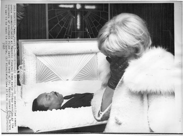MLK lies in his casket as an unidentified woman weeps. 7x10’’, NRMT .