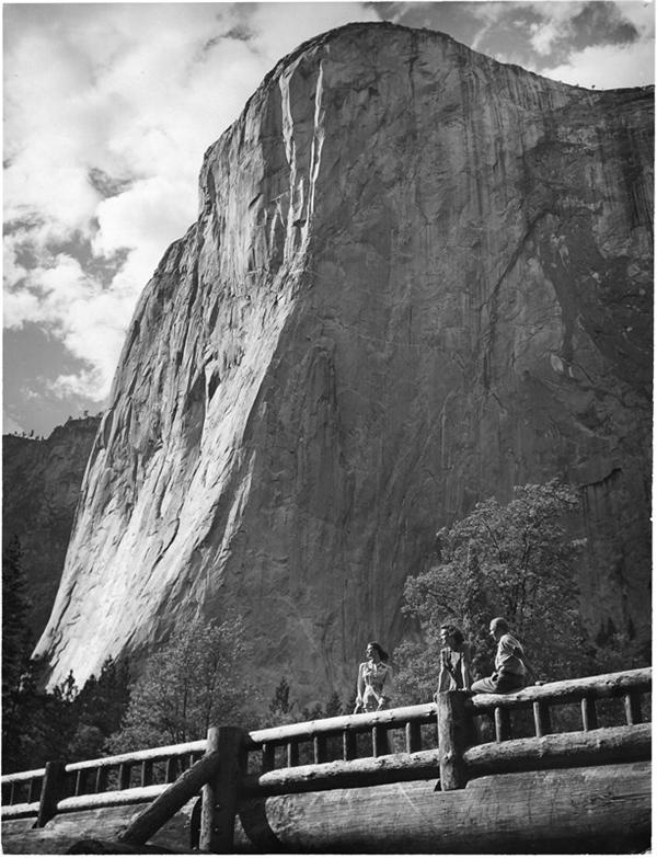 1940s El Capitan as photographed from the base. Stamped on the back “Photographed in Yosemite by Ansel Adams.” 7x9.25’’, NRMT