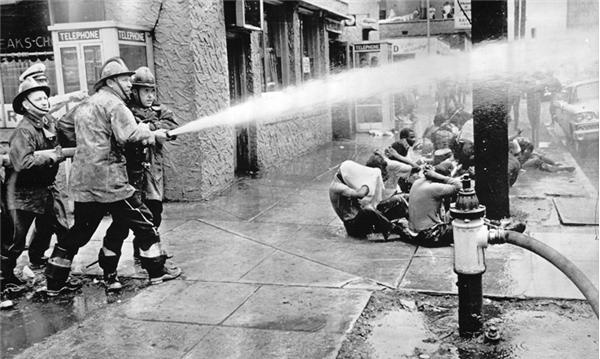 Fireman turn the hoses on demonstrators in Birmingham, Alabama. Dated July 25, 1964. 5.5 x9.25’’, EX-MT.