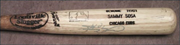 Lot # 744: 1999 Sammy Sosa Game Used & Signed Bat (34.5")