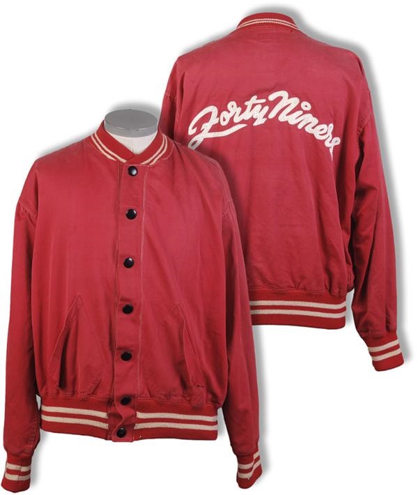 Notes: “Forty Niners” sewn directly onto the back of the jacket. Red and white wool sleeves and collar. Tittle’s number “14” is sewn directly onto a patch in the collar.
