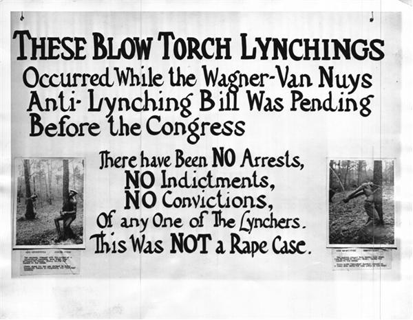 Poster plastered on the walls of the U.S. Senate regarding the Anti-Lynching Bill. It caused a “tiff” between senators Conally and Clark according to the original paper caption. EX-MT, 7x9” .